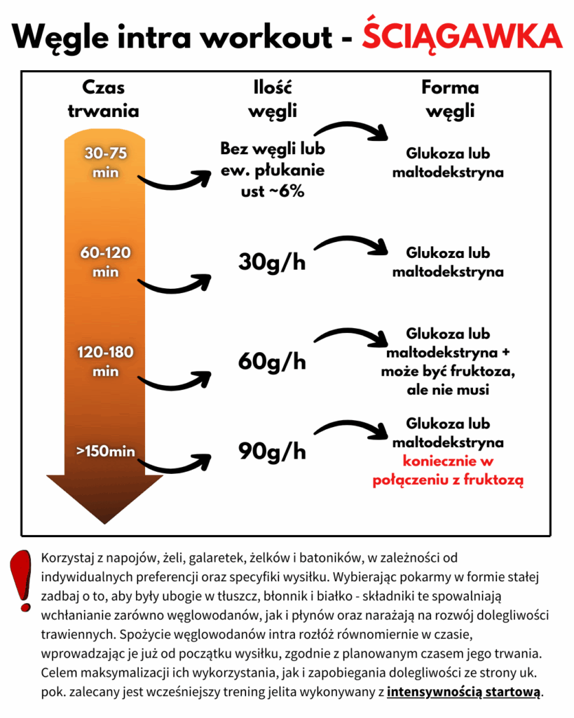 Ilość węglowodanów zależy od czasu trwania wysiłku oraz indywidualnej tolerancji.